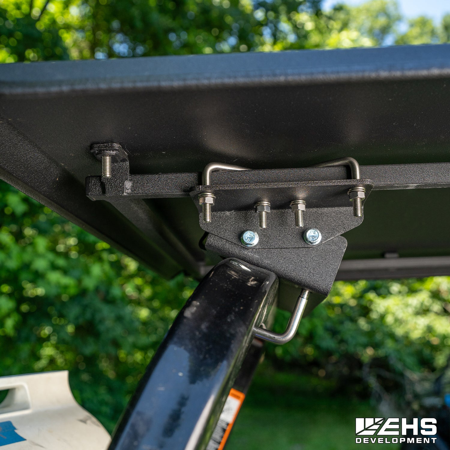 This zero-turn mower canopy is constructed from durable .048" steel and includes heavy-duty brackets for a secure attachment to your ROPS. It features U-bolts for adjusting the roof backward and forward to ensure a precise fit for your machine, giving the direct overhead protection you need. Additionally, it is powder-coated for even more durability and protection against UV rays and corrosion.