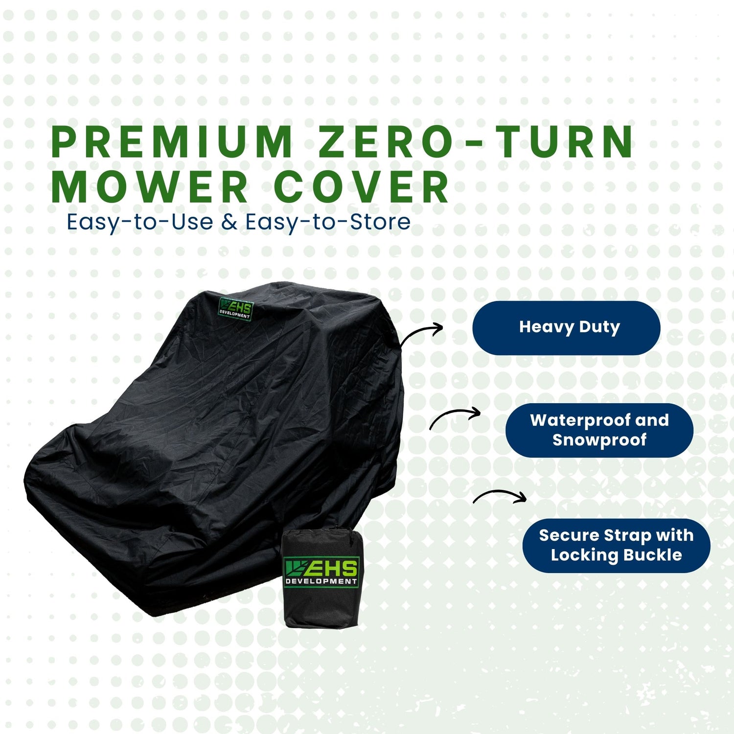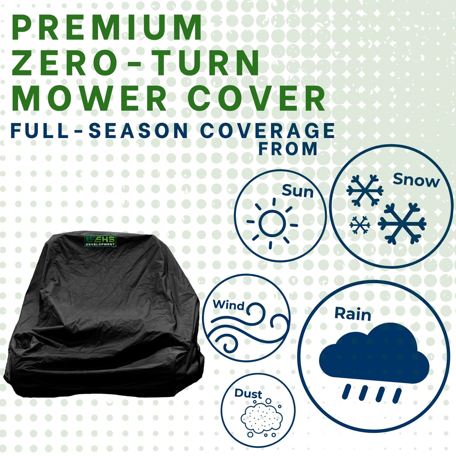 Don’t leave your mower at the mercy of the weather. EHS Development’s Zero-Turn Lawn Mower Cover provides complete protection, whether you’re storing your equipment indoors, outdoors, in the garage, barn, or through the winter season. You can count on this zero-turn lawn mower cover to do it job.