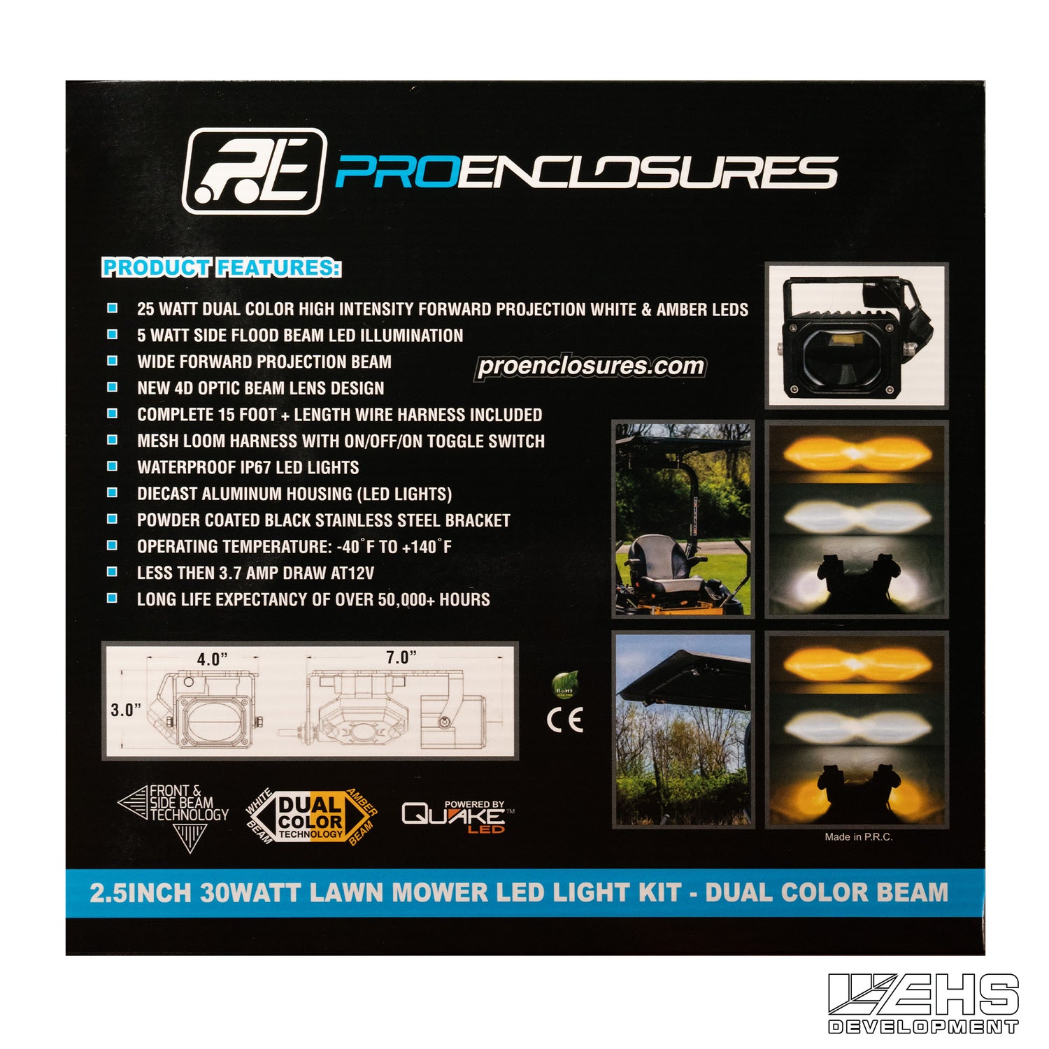 There are never enough hours, and sometimes your work day doesn't end until dusk. But that's okay when you've installed ProEnclosures' Zero-Turn Mower Light Kit. With two 30 W LED lights attached to your mower's canopy, you don’t have to put off work till the next day. Not to mention, this zero-turn mower light kit is easy to install with its 15 ft. plug-and-play harness.